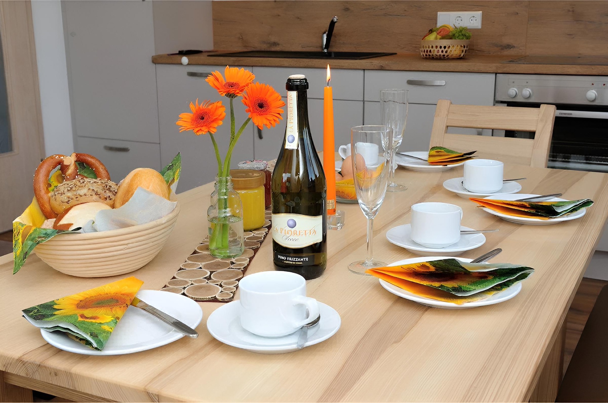 frische Brötchen nach Wahl, sowie Milch vor